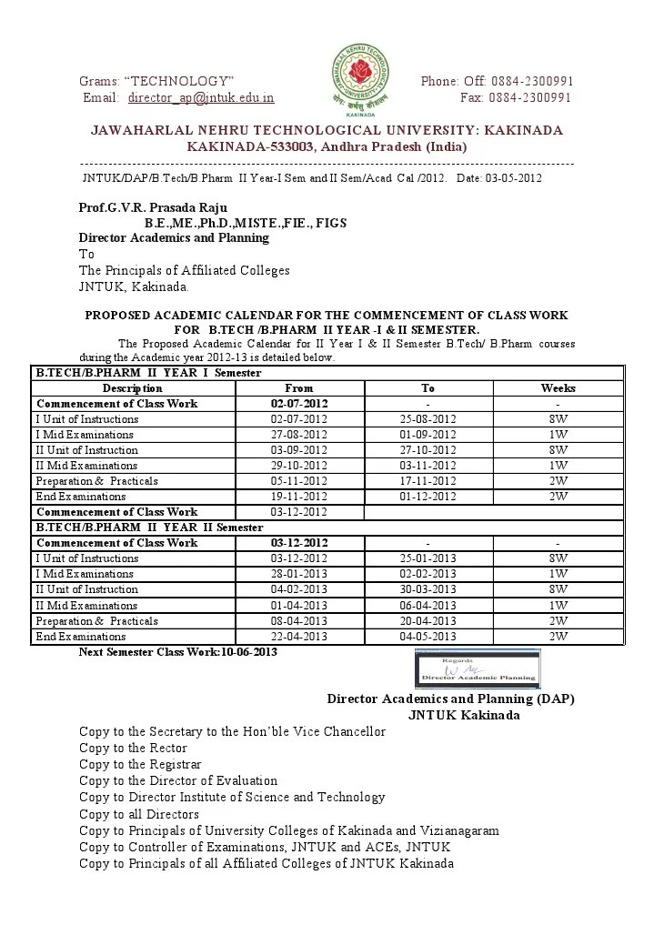 jntukdapproposed academic calendar b tech and b pharm ii iii and iv