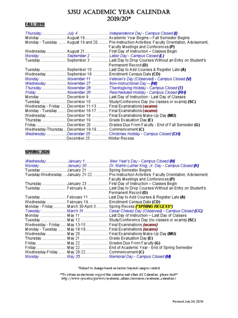 Academic Calendar AY 201920 PDF Academic Term Schools